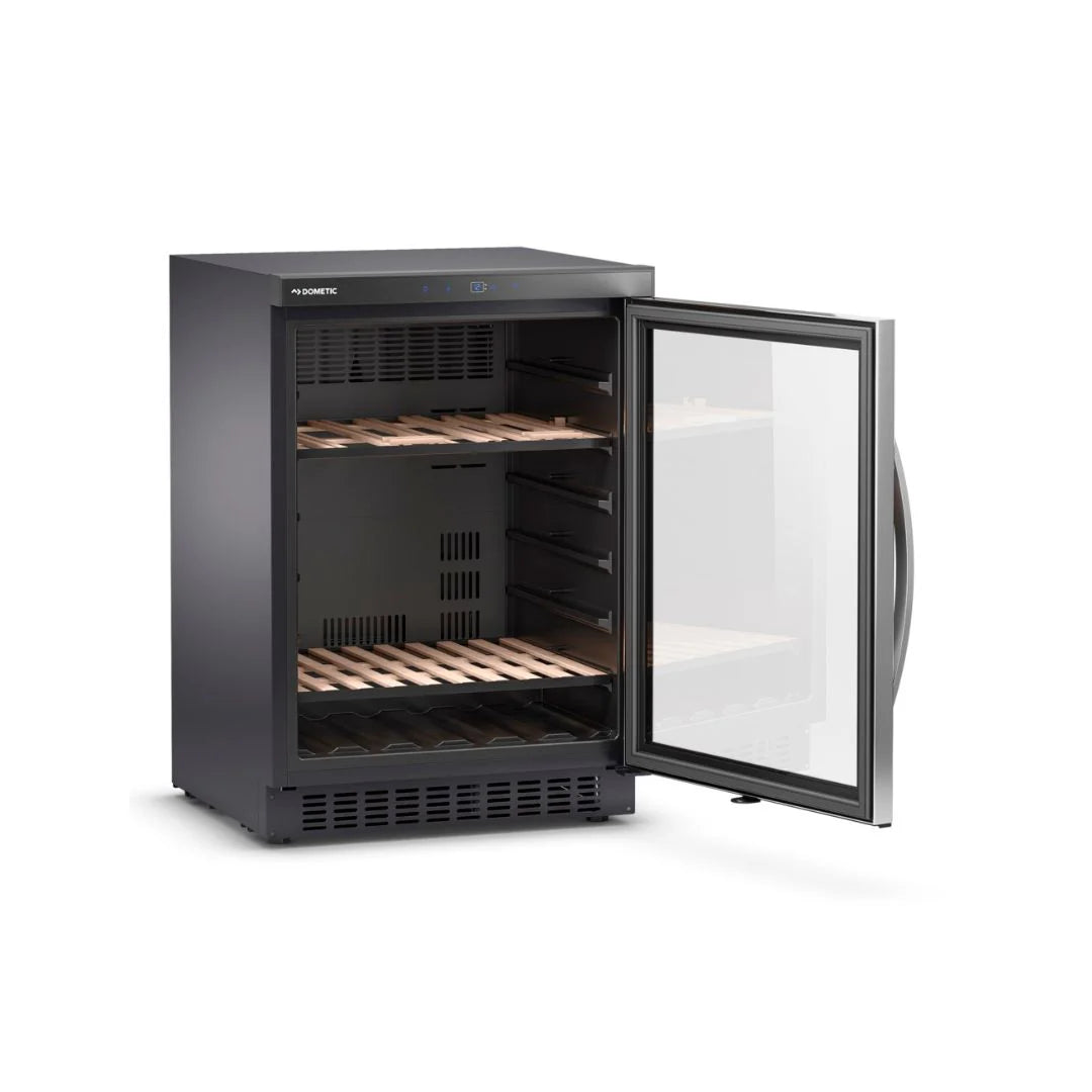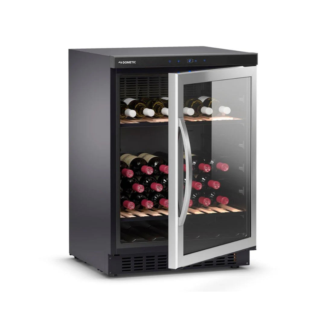 De Dometic B68G is een stijlvolle onderbouw- én vrijstaande wijnklimaatkast met plek voor 68 flessen in één temperatuurzone, instelbaar van +5 °C tot +20 °C. Dankzij het drievoudige anti-UV glas, het geïntegreerde luchtcirculatiesysteem en de verwarmings- en koelfunctie blijven je wijnen altijd perfect bewaard. Het zilver met zwarte design, houten leggers en LED-verlichting geven de kast een moderne uitstraling, terwijl functies zoals een deuralarm, verstelbare pootjes en de optie voor extra draagplanken zorgen voor extra gebruiksgemak.