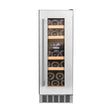 Deze onderbouw wijnklimaatkast biedt ruimte voor 17 Bordeaux-flessen en heeft een netto inhoud van 58 liter. Met twee afzonderlijk instelbare temperatuurzones tussen 5°C en 20°C creëer je de perfecte bewaaromstandigheden voor zowel witte als rode wijnen. De roestvrijstalen afwerking in combinatie met de glazen deur geeft het model een luxueuze en tijdloze uitstraling. Voorzien van vier houten leggers en witte LED-verlichting, waardoor je jouw collectie stijlvol presenteert. De wijnklimaatkast heeft een geluidsniveau van 39 dB en een jaarlijks energieverbruik van 100 kWh. Geschikt voor een nis van 30 cm breed, 82 cm hoog en 57 cm diep. De deur is omkeerbaar en kan naar wens links of rechts gemonteerd worden.