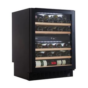 De Temptech Skagen SKX60DBT is een onderbouw wijnkoelkast voor 38 flessen verdeeld over twee temperatuurzones van 5-12°C en 12-20°C. Deze wijnkoelkast heeft een netto inhoud van 95 liter en beschikt over 4 houten uittrekbare leggers. De UV-beschermde glazen deur met dubbel glas en argonvulling beschermt uw wijn optimaal. Binnenin is witte LED-verlichting aanwezig en een actief koolstoffilter voor een perfecte luchtkwaliteit. Het geluidsniveau bedraagt slechts 39 dB en het jaarlijkse energieverbruik is 135 kWh. De afmetingen zijn 59,5 cm breed, 82 cm hoog en 57 cm diep, met een gewicht van 43 kg. De deur is omkeerbaar en het model werkt met een efficiënte compressor en R600a koelmiddel.
