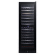 De Temptech Sommelier SOM180DRB is een vrijstaande wijnklimaatkast met een capaciteit van 163 flessen, verdeeld over twee temperatuurzones: 5–12°C voor witte wijnen en 12–20°C voor rode wijnen. Het apparaat heeft een modern ontwerp met een zwart glazen deur, geïntegreerde handgreep en 14 uittrekbare houten leggers. De kast is voorzien van UV-bescherming, actieve koolfilter, witte LED-verlichting en een omkeerbare deur. Het geluidsniveau bedraagt 40 dB, het jaarlijkse energieverbruik is 199 kWh, en de afmetingen zijn 59,5 x 177 x 68 cm. De kast maakt gebruik van een compressor en koelmiddel R600a.