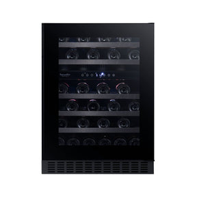De Temptech Sommelier SOMX60DRB is een hoogwaardige onderbouw wijnklimaatkast met een capaciteit van 46 Bordeaux-flessen en een netto inhoud van 145 liter. Dankzij twee afzonderlijk instelbare temperatuurzones (boven: +5°C tot +12°C, onder: +12°C tot +20°C) kun je zowel witte als rode wijnen onder ideale omstandigheden bewaren. De kast is voorzien van een zwarte glazen deur met UV-filter en een geïntegreerd handvat, wat zorgt voor een moderne en strakke uitstraling. Met zes uitschuifbare beukenhouten leggers, witte LED-verlichting, een actief koolstoffilter en een geluidsniveau van slechts 39 dB is dit model perfect voor wijnliefhebbers die hun collectie optimaal willen presenteren en bewaren. Het jaarlijkse energieverbruik bedraagt 145 kWh (energieklasse G). Afmetingen: breedte 59,5 cm, hoogte 81,3 cm, diepte 57 cm. De scharnierdeur is omkeerbaar en opent standaard naar rechts
